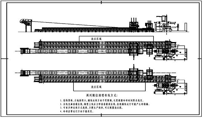 2.1 結(jié)構(gòu)緊湊,占地面積小,輔線運轉(zhuǎn)方向不受限制,長度根據(jù)冷卻時間要求選定。