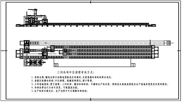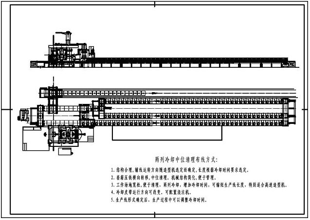 5.1 結(jié)構(gòu)合理,輔線運轉(zhuǎn)方向隨造型機選定而確定,長度根據(jù)冷卻時間要求選定。